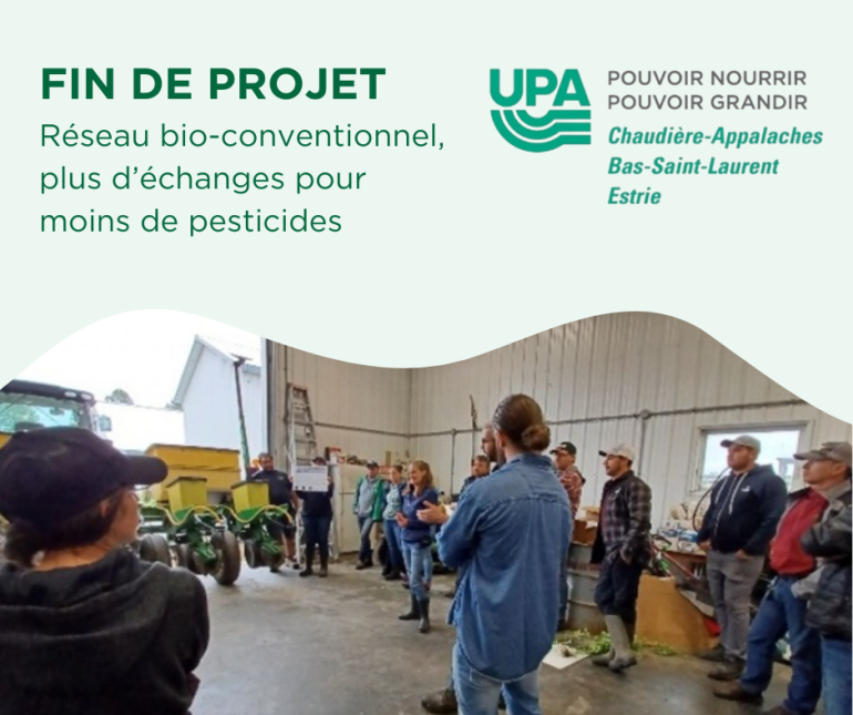 Ce projet, mené par les fédérations de l’UPA de la Chaudière-Appalaches, du Bas-Saint-Laurent et de l’Estrie, a rassemblé plus de 800 participants à travers 20 séances d’information, 25 ateliers de discussion et 23 visites de démonstration sur le terrain. Les échanges entre producteurs biologiques et conventionnels ont favorisé l’adoption de méthodes alternatives, telles que la lutte intégrée et le désherbage mécanique.