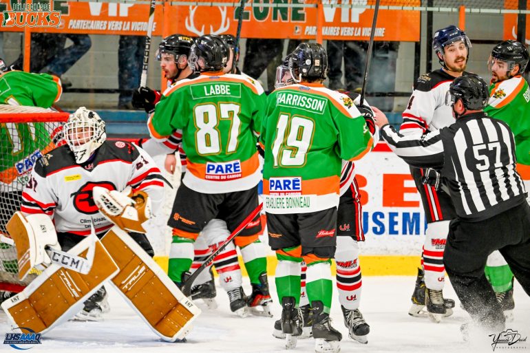 Les Bucks de Bellechasse ont laissé filer une avance de deux buts et se sont inclinés 4-3 contre Nicolet, samedi soir à l’aréna de Saint-Anselme, dans un match crucial pour le classement de la Ligue sénior AAA.