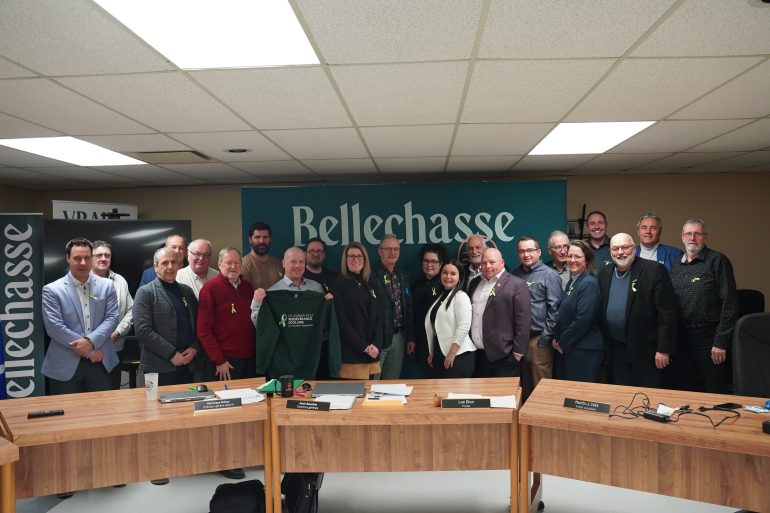 Les maires de Bellechasse rendant hommage à la Journée de la Persévérances pendant le conseil (Crédit Photo : Jasmin Blanchette)