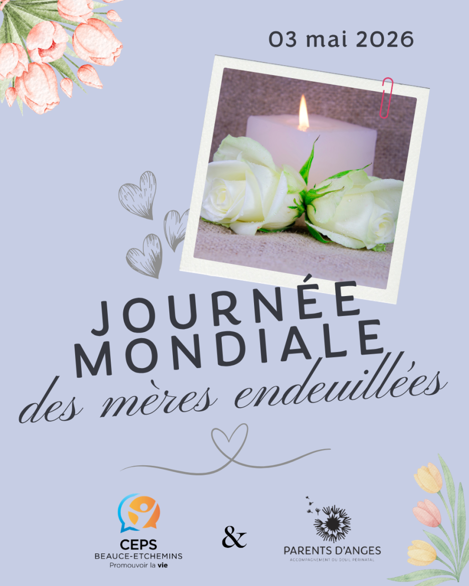 Parents d’Anges Beauce-Etchemins, en collaboration avec le CEPS, tiendra le 3 mai prochain une marche commémorative à l’occasion de la Journée mondiale des mères endeuillées. L’activité se déroulera de 13 h à 15 h à l’Île Pozer, devant le Jardin des Anges, à Saint-Georges. L’organisme précise que cette marche s’adresse aux mères et aux familles touchées par le deuil d’un enfant, peu importe l’âge de celui-ci. L’objectif est d’offrir un […]